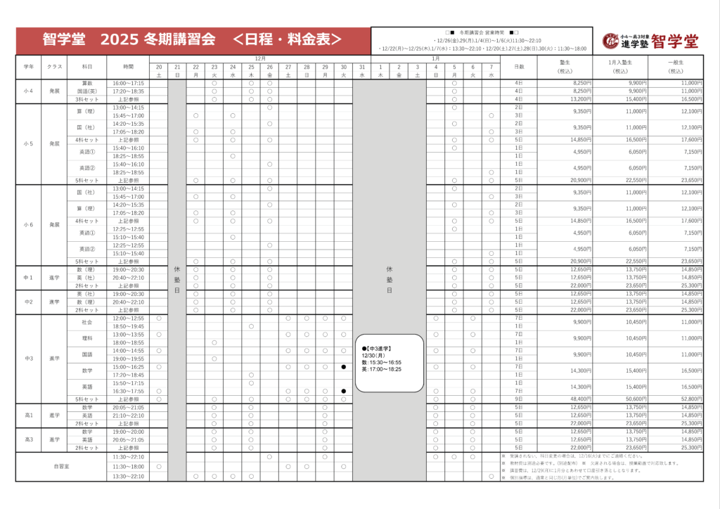 2025年12月17日 / 最終更新日 : 2025年12月17日 新村亮介 智学堂のお知らせ 受講生募集【2025年度・冬期講習会】 2025年度冬期講習会の日程です。受講生を募集しております!ご興味のある方はぜひお問い合わせください! コメントを残す コメントをキャンセルメールアドレスが公開されることはありません。 ※ が付いている欄は必須項目ですコメント ※ 名前 メール サイト